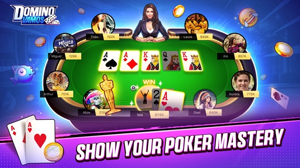 Domino Vamos es un juego social donde puedes competir en dominó, póker y tragamonedas con jugadores de todo el mundo, acumulando recompensas y mostrando tu habilidad estratégica.